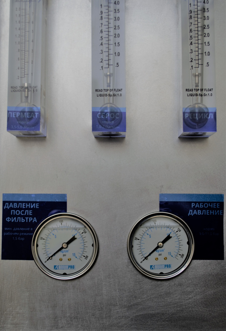Ротаметр и манометр системы обратного осмоса