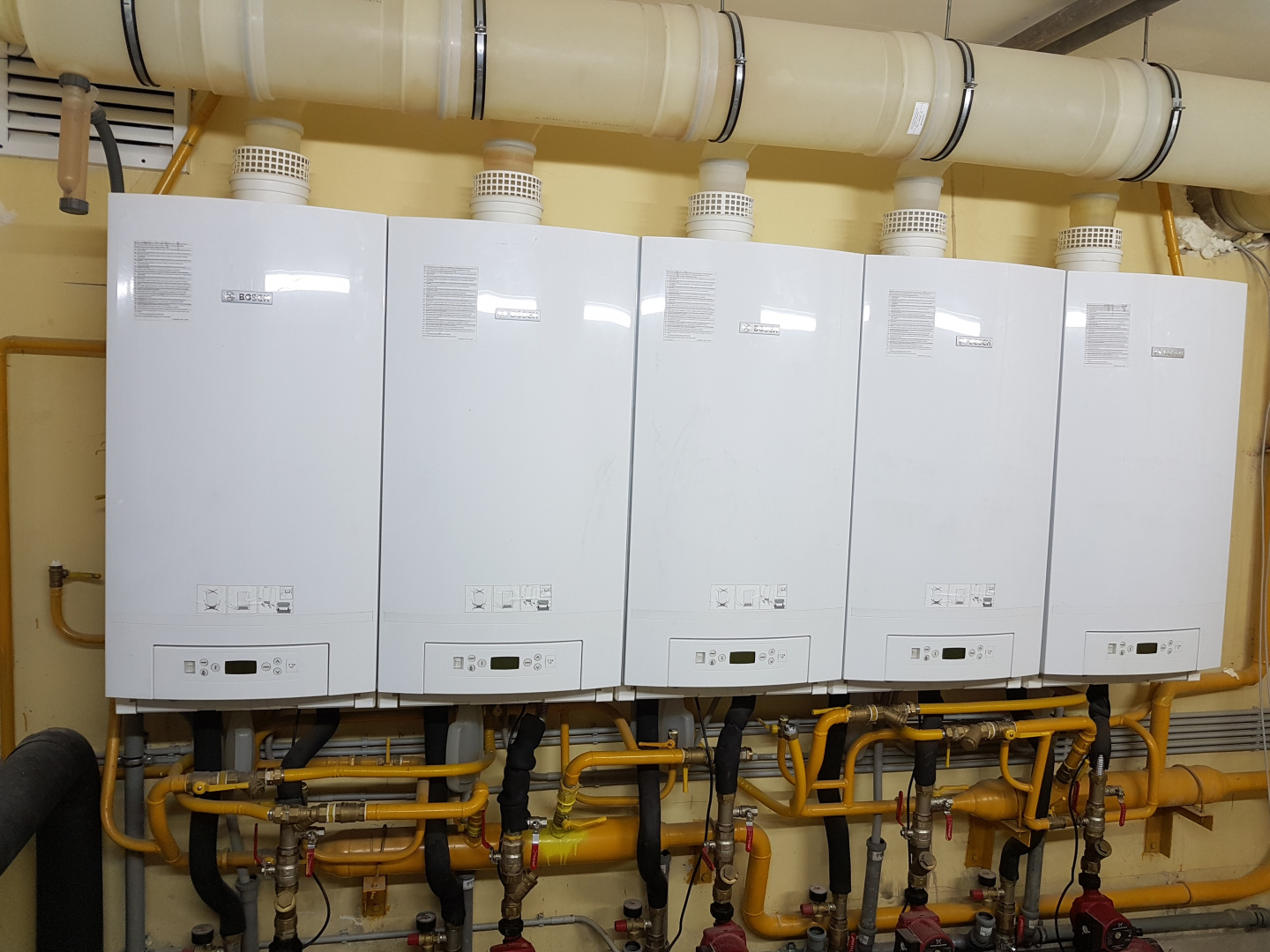 Дымоход из кислотостойкой нержавеющей стали от 5 конденсационных котлов общей мощностью 500 кВт