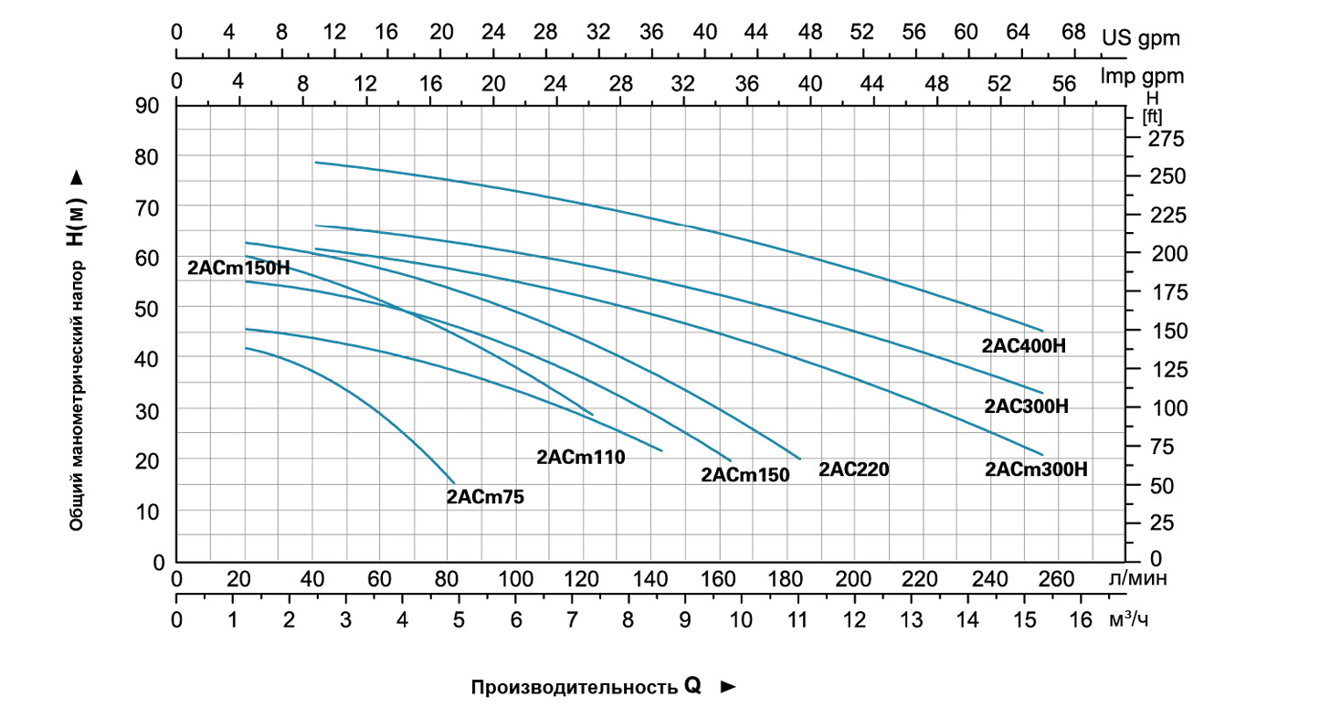 Высокопроизводительный центробежный двухступенчатый насос 2ACm150H предназначен для перекачивания чистой, не содержащей абразивных частиц (песка) воды из колодцев и емкостей.